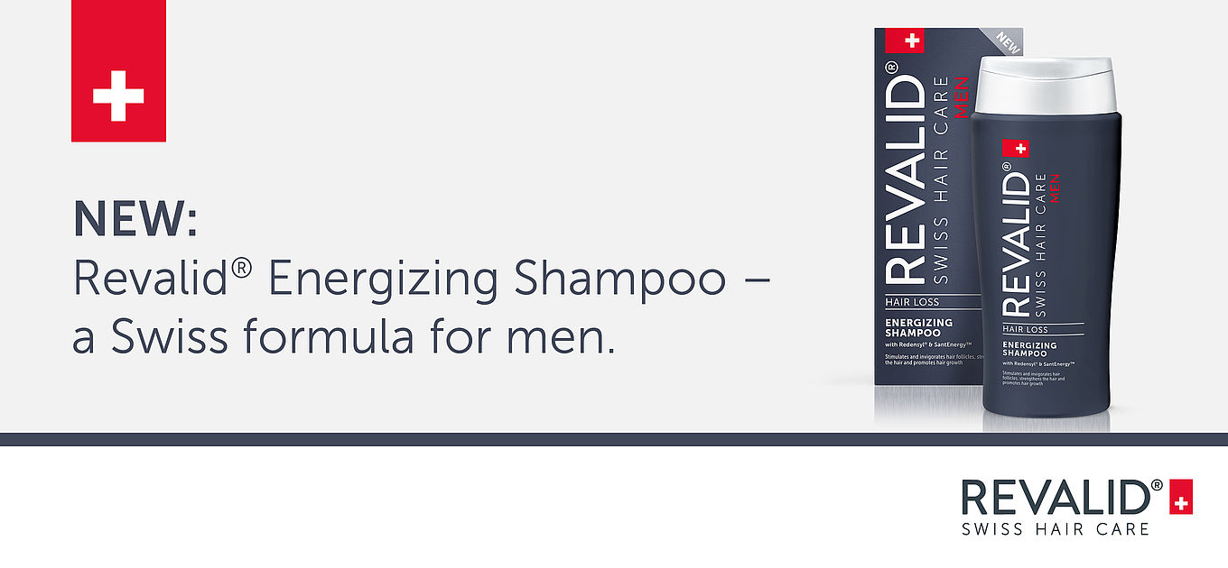 The new Energizing Shampoo for men by Revalid is an innovative combination of the two powerful active ingredients SantEnergy and Redensyl. The active ingredients stimulate and invigorate the hair follicles, protecting them from oxidative damage, strengthen the hair, and promote hair growth. The enriched formula with Swiss Artemisia flower extract gently cleans and moisturizes both dry scalp and hair and strengthens hair structure. Naturally and effective. This shampoo especially for men will be available in pharmacies in Autumn 2022.