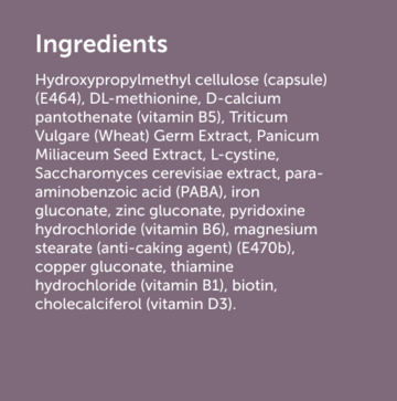 Naponta szedhető étrend-kiegészítő, amely táplálja és erősíti a hajat. A korszerű, svájci receptúra alapján készült kapszula vitaminokat, ásványi anyagokat, aminosavakat, valamint adaptogéneket (REISHI és POLYPORUS gombákat) és rozmaringot tartalmaz, hogy elősegítse a haj természetes növekedését és a fejbőr egészséges működését.